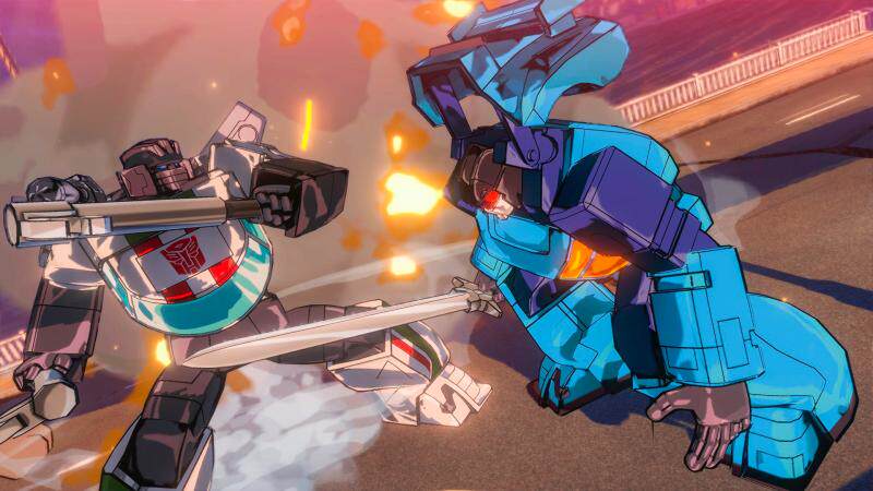 不说别的,《变形金刚:毁灭》的画风让人一看就喜欢。它抛弃了之前那些变形金刚游戏的写实 3D 风格,采用了卡通渲染,而且是相当让人怀念的老动画片。这可就一下子吸引了所有玩家的注意。