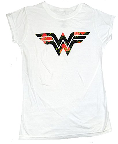 -. Binding : Apparel -. Brand : DC Comics -. Department : womens -. Feature : Officially licensed DC Comics T-shirt / Juniors Tee are designed for teenagers or smaller women and have a more fitted look. / Grab your lasso of truth and head for the invisible jet with this Wonder Woman tee. -. ProductGroup : Apparel -. ProductTypeName : SHIRT -. Title : Wonder Woman Floral Print Symbol Juniors T-shirt