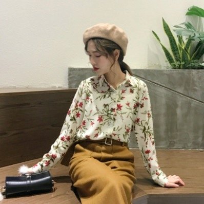 -. Title : 春 ボタニカル柄 ブラウス シャツ 花柄シャツ