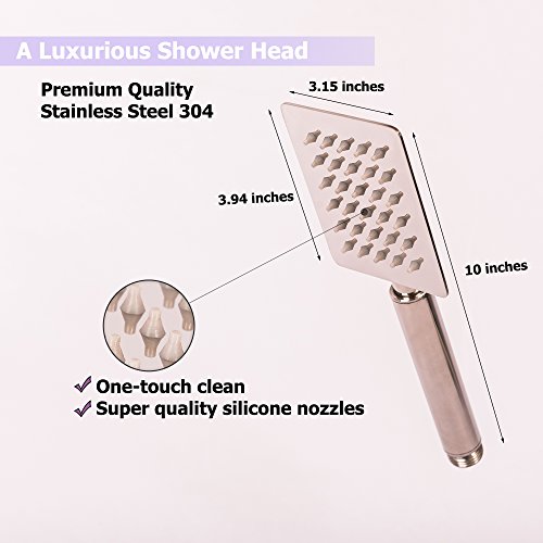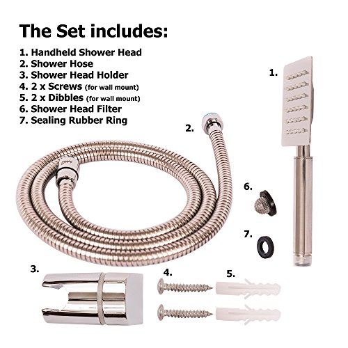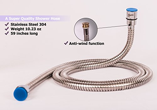 THE TOP QUALITY THAT YOU DESERVE: Our Stainless Steel 304 alloy is reliably for ANTI-CORROSION, making sure the set will be durable and a long-lasting accessory. The Set includes:** Luxury Handheld Shower Head ** ANTI-WIND, smart design, solid, 59” Shower Hose ** 360-Degree,adjustable shower head holder. A GREAT VALUE pack for a deluxe shower experience!
