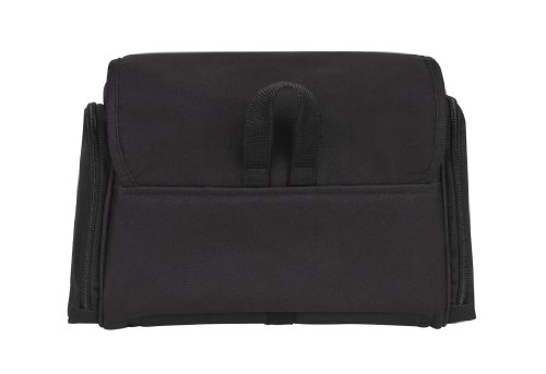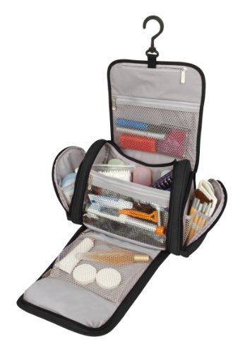 -. Feature : Hangs conveniently for easy access / Elastic loops hold bottles upright / Zippered pockets and compartments provide organization