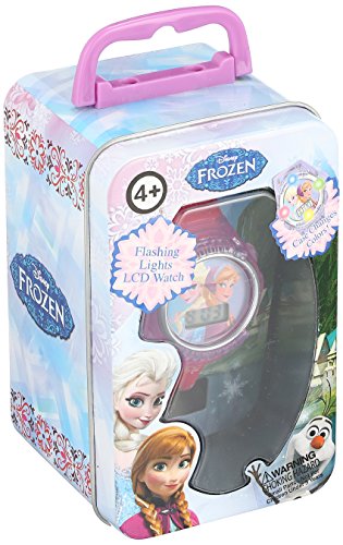 -. Binding : Watch -. Brand : Disney -. Department : girls -. EAN : 0049353909714 -. Feature : Whimsical, fun plastic watch with pink band and purple dial / Watch has box clasp, tongue and safety clasp; quartz movement; not waterproof / Quartz Movement / Case Diameter: 25.42mm / Not Water Resistant -. Label : Disney -. Manufacturer : Disney -. Model : FKFKD013FL -. MPN : FKFKD013FL -. PartNumber : FKFKD013FL -. ProductGroup : Watch -. ProductTypeName : WATCH -. Publisher : Disney -. Studio : Disney -. Title : Disney Kids' FKFKD013FL Digital Display Quartz Pink Watch with Flashing Lights in a Gift Tin -. UPC : 049353909714