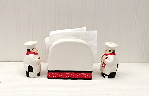 - Tuscany Colorful Plump Bistro Chef Hand Painted Napkin, Salt & Pepper Shakers Set of 3pcs, 89128 by ACK