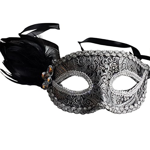 -. Binding : Toy -. Brand : Nati -. Color : black -. Department : womens -. EAN : 0700613330302 -. Feature : Venetian-style half face mask. / The mask features a black fabric based with a glittery silver jacquard print all over. / Black feather on the right. / Black ribbon tie for easy wear. -. IsAdultProduct : 0 -. Label : Nati -. Manufacturer : Nati -. Model : HRF00801 -. MPN : HRF00801 -. PackageQuantity : 1 -. PartNumber : HRF00801 -. ProductGroup : Toy -. ProductTypeName : TOYS_AND_GAMES -. Publisher : Nati -. Studio : Nati -. Title : Nati Women's Masquerade Feather Mask Color Black -. UPC : 700613330302