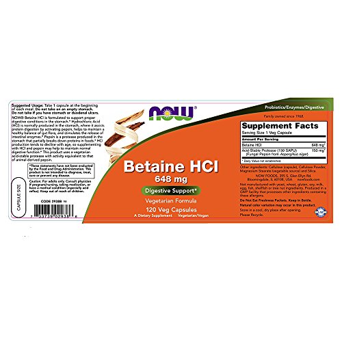 NOW Betaine Hydrochloride with Pepsin is formulated for maximum potency. It combines Betaine Hydrochloride with Pepsin that is standardized to National Formulary requirements. This blend is encapsulated for quick delivery and is a great complement to any dietary regime.Feature