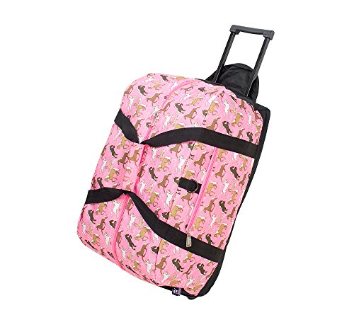 Studio : Wildkin Publisher : Wildkin Binding : Toy Product Description The Wildkin Horses in Pink Good Times Rolling Duffel Bag is great looking luggage for your child. Covered in beautiful thoroughbreds, the large main compartment holds enough to pack for many days, and construction is durable and built to last. Smooth-rolling inline skate wheels make pulling easy, even for kids, and an outside pocket makes this bag very embroidery-friendly. 0