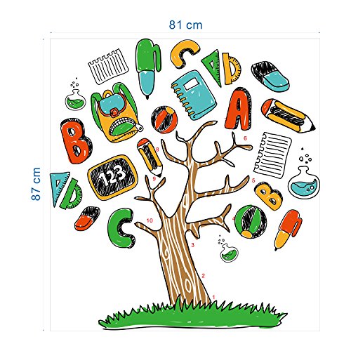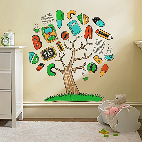 DecalMile Cartoon Alphabet Stationery Tree Wall Stickers Removable Wall Decals Murals For Children's Room Nursery Classroom Kids Bedroom