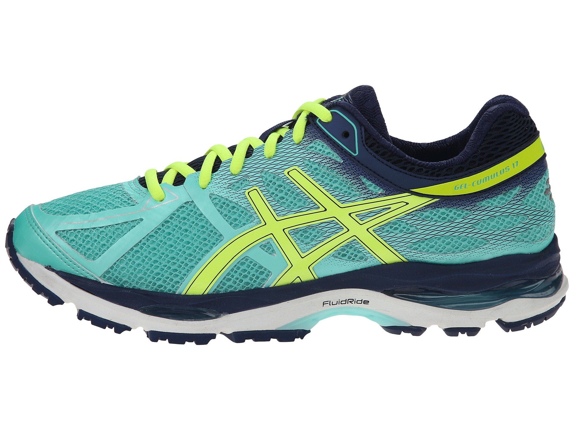 | Product Information SKU: #8800396Celebrating its 17th iteration, the latest ASICS? Gel-Cumulus? hasn't lost the cloud-like plush and subtle stability you have come to love.Support Type: Neutral to underpronation (supination).Cushioning: Minimal feel with lightweight, flexible response.Surface: Road.Differential: 10 mm. Breathable mesh and synthetic upper materials. Seamless upper construction reduces the likelihood of friction-related irritation.Lace-up closure.Discrete eyelets disburse lace tension for optimal comfort. Padded tongue and collar. Soft textile lining. Thin foam ComforDry™ sockliner features anti-odor properties for a cooler, drier in-shoe feel. I.G.S? (Impact Guidance System) employs linked componentry to enhance the foot's natural gait from heel strike through toe-off.Women's-specific midsole design features a lower-density top layer that allows ladies to better enjoy the benefits of midsole compression. Rearfoot and Forefoot Gel? systems work together to reduce impacting shock and allow movement in multiple planes from heel strike through toe-off.FluidRide™ midsole provides just the right balance of bounce back, cushioning, and lasting wear in a lightweight package. Heel/Forefoot: 22 mm/12 mmGuidance Trusstic System? integrates Guidance Line? for heightened stride efficiency that doesn't interfere with mid-foot structural integrity. Guidance Line vertical flex groove decouples the tooling along the line of progression for a smoother ride.Imported. Product measurements were taken using size 8.5, width 2A - Narrow. Please note that measurements may vary by size.Weight of footwear is based on a single item, not a pair.Measurements: Weight: 10 oz |