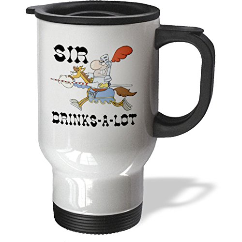 3dRose tm_203472_1 Funny Knight Sir Drinks a Lot Stainless Steel Travel Mug, 14 oz, White
