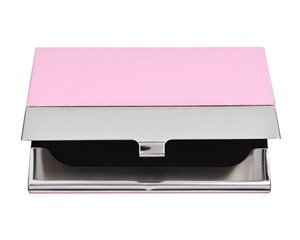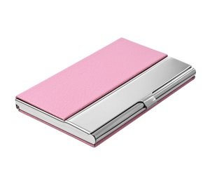 Cosmos ® Pink PU Leather Surface Stainless Steel Business Card Name Card Case /Holder with Mirror Finish Inset