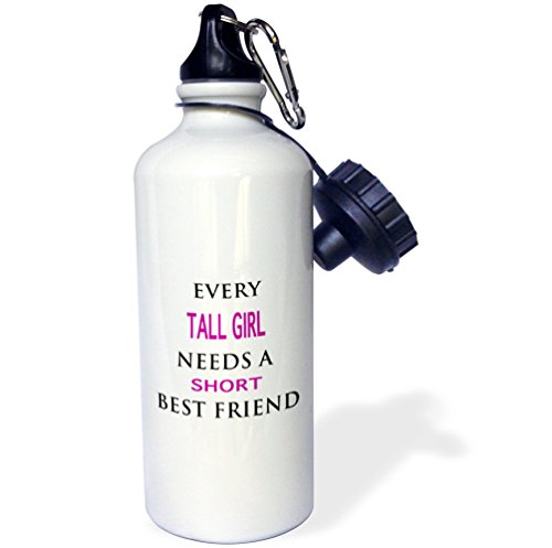 3dRose wb_221181_1 "EVERY TALL GIRL NEEDS A SHORT BEST FRIEND" Sports Water Bottle, 21 oz, White