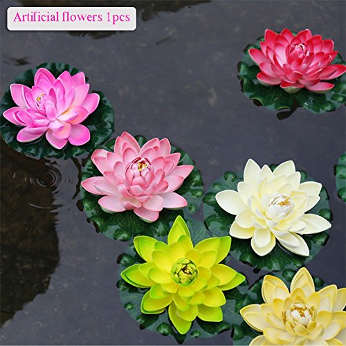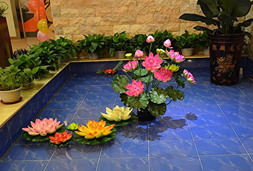 Meiwo 1 PC Real Touch Like Artificial Lotus Water Lily Flowers / Lotus Foam Flowers For Pond Fountain Home Decor Arrangement(Pink)