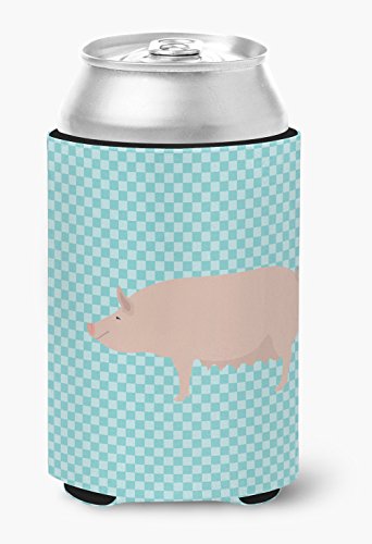 Caroline's Treasures BB8112CC English Large White Pig Blue Check Decorative, Can Hugger, Multicolor