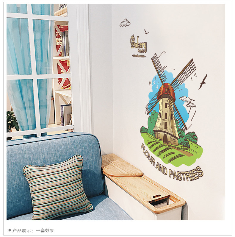 墙贴壁纸墙画儿童房幼儿园自粘客厅房间墙壁装饰卡通风车贴纸自粘