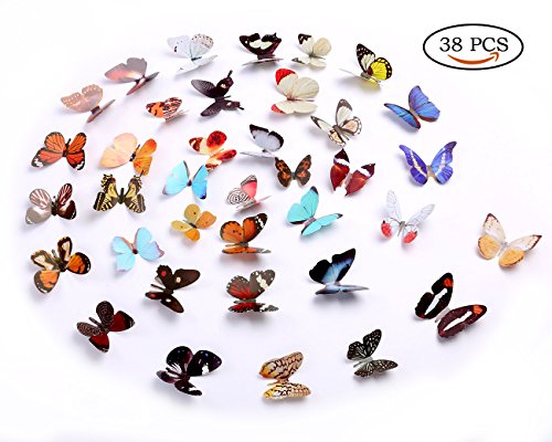 -. Title : Butterfly Wall Decals 38 Pcs 3D Butterfly Removable Mural Stickers Wall Stickers Decal Wall Decor for Home and Room Decoration