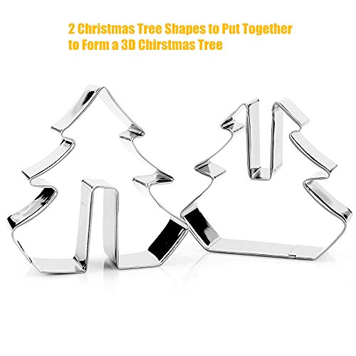- ✔ FUN SHAPES AND EASY TO USE. They are fun shapes, and 2 stainless steel cookie cutters for each of the 3-D items, which are Christmas tree, reindeer, sleigh, and snowman. One part will be the base, and the other part will slide into the base, to make it stand up.