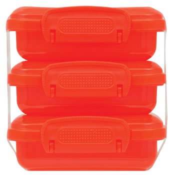 Colorful, handy snap-close lock-top containers. Made for snacks but also useful for organizing small items such as desk supplies, beads, crafts, crayons, first aid organization, playing cards and much much more.