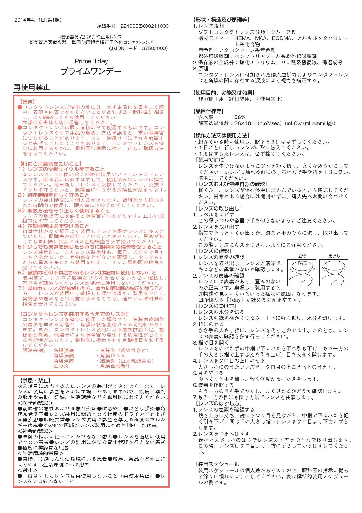 Since Prime One Day incorporates UV absorber, it protects your eyes firmly from ultraviolet rays.