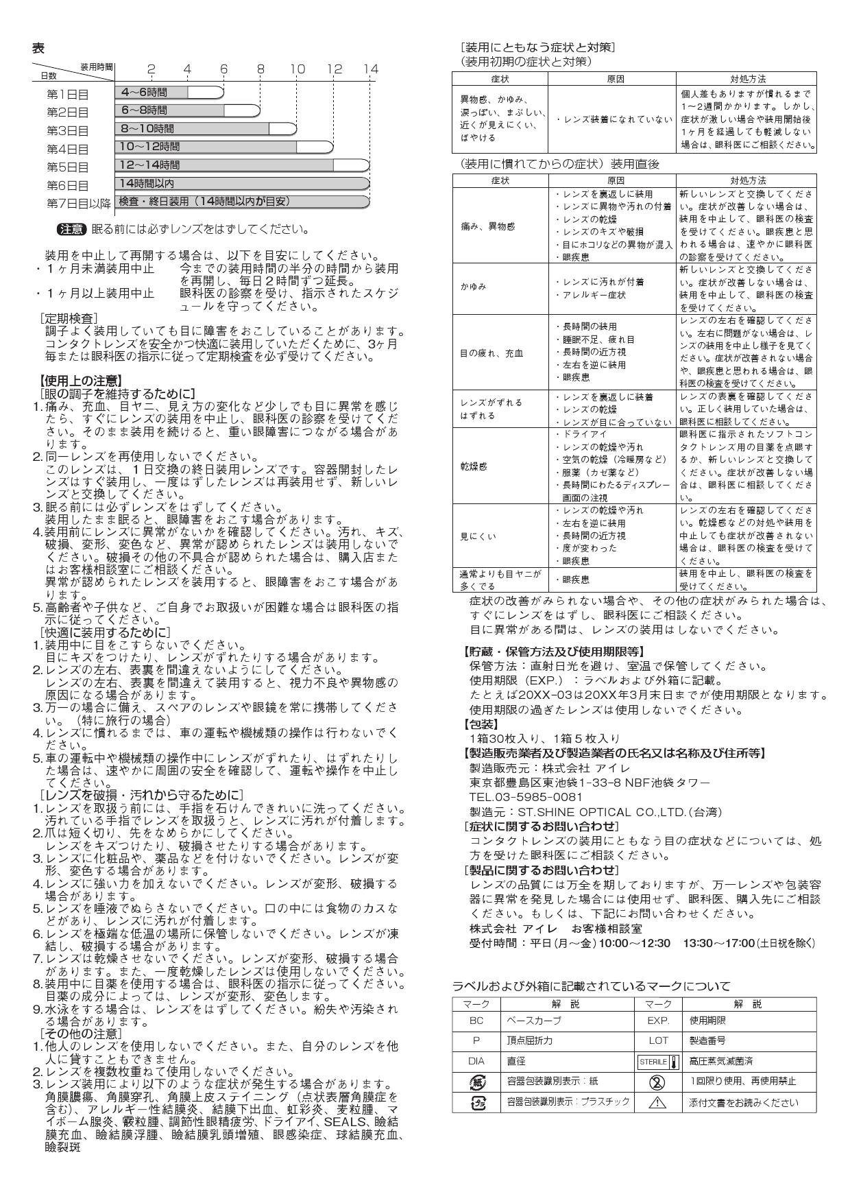 ● If you feel any abnormality, stop wearing and please take the examination of the ophthalmologist immediately.