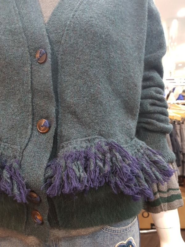 전면 밑단의 수술 장식 디테일이 포인트인O'2nd모혼방 니트 가디건으로 밑단의 배색과 사선으로 떨어지는 수술 옆라인, 포인트 단추와 같이 디테일이 살아있어 더욱 이쁘게 착용이 가능한 아이템입니다.