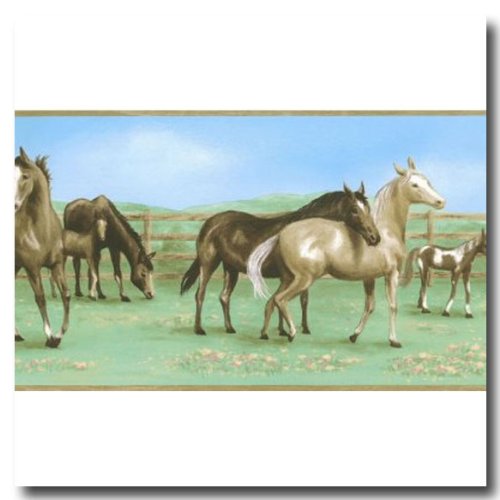 Horse Farm Field Wallpaper Wall Border- Light Edge
