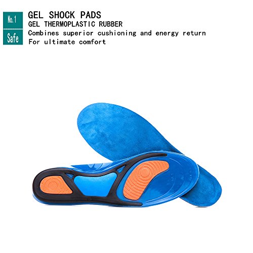 - Gel insoles helps prevent and relieve pain from sports injuries like shin splints, runner's knee, plantar fasciitis, for shock absorption, heel protection and foot arch support for walking hiking plantar fasciitis heel spur foot pain. Provide protection for sports safety.
