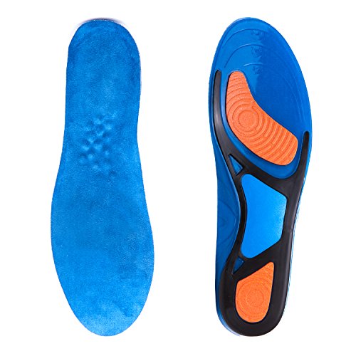 Gel Sports Orthotic Insoles for Shock Absorption, Heel Protection, Plantar Fasciitis Relief and Foot Arch Support, Men and Women Shoes Insole (Blue,8-13,1 Pair)