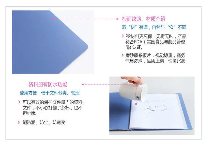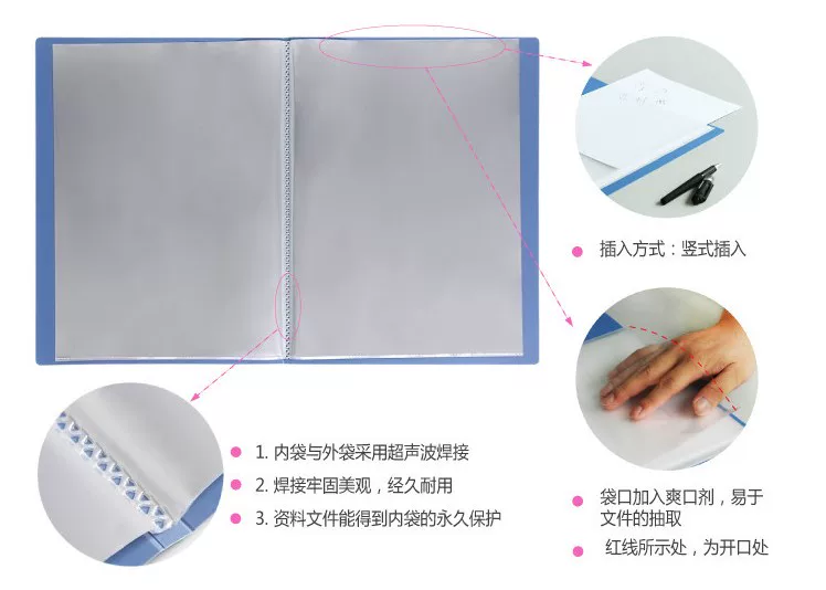 Brochure inside pages are double-sided and transparent, in order to facilitate the customers to choose the color of the cover, optional starting today under blue black optional!