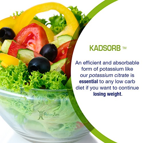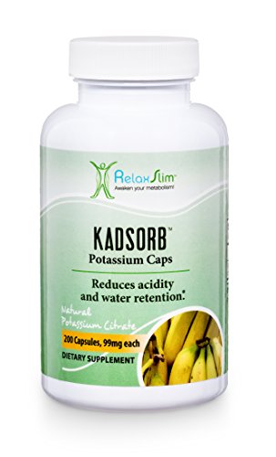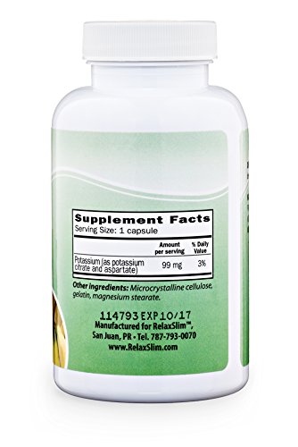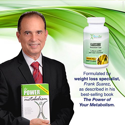 -. Binding : Health and Beauty -. Brand : RelaxSlim TM -. EAN : 0685450648653 -. Feature : A POTASSIUM DEFICIENCY CAN HAVE VERY NEGATIVE EFFECTS ON YOUR HEALTH- Potassium is an essential mineral that maintains water balance in the body and is also used to neutralize acids in the body. When it is lacking a person might suffer from nervousness, cramps in the legs, confusion, muscular weakness, cravings, muscular spasms, fatigue, sodium intolerance, irritability, dry skin, slow reflexes and liquid retention. / FOR SOMEONE TRYING TO LOSE WEIGHT POTASSIUM IS ESSENTIAL-When you use a proper diet like the 2 X 1 described in the book "The Power of Your Metabolism" you will feel better and start to slim down. When you start to lose fat, your body starts to readjust to the new nutritional intake and you may experience a potassium deficiency and create water retention. Sodium retains water and potassium eliminates water. Therefore a potassium deficiency might bar your weight loss progress if not addressed. / KADSORB IS A SPECIAL TYPE OF POTASSIUM- Potassium comes in many forms but the most absorbable form of potassium is found in KADSORB. In our RelaxSlim Centers where we work with thousands of people trying to lose weight we found using this form of potassium makes a very big difference in the body properly absorbing it correctly. This is called potassium citrate and will assist you in getting the natural balance reestablished. It will also assist you in reducing acidity in the body. / WE ARE A RELIABLE BRAND AND COMPANY WITH A PROVEN TRACK RECORD -RelaxSlim Systems is a natural system used by over 25,000 people worldwide proven to be very efficient in improving the metabolism. Diets don't work if you don't improve your metabolism! For people with a "slow metabolism" losing weight and keeping it off can be very difficult. RelaxSlim Systems is a system based on the discoveries made by metabolism specialist, Frank Suarez, as described in his book "The Power of Your Metabolism" / YOU CAN BUY WITH CONFIDENCE - At RelaxSlim we are confident we can help you achieve your goals. But in case you are not satisfied for any reason with our product we offer a 30 day Guarantee. We always stand by our products, so if at any time you have any questions we would love to hear from you. We have certified metabolism consultants ready to help you achieve success with the use of our products. -. IsAdultProduct : 0 -. Label : RelaxSlim -. Manufacturer : RelaxSlim -. ProductGroup : Health and Beauty -. ProductTypeName : HEALTH_PERSONAL_CARE -. Publisher : RelaxSlim -. Studio : RelaxSlim -. Title : RelaxSlim Natural Potassium Citrate Capsules, Formulated by Award Winning Metabolism and Weight Loss Specialist- Reduce Acidity and Water Retention Naturally and Effectively -. UPC : 685450648653