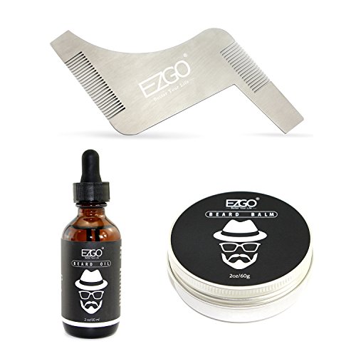 EZGO Beard Grooming Care Kit - Natural Beard Balm, Natural Beard Oil & Stainless Steel Beard Comb - Bundled Beard Management Set For Men