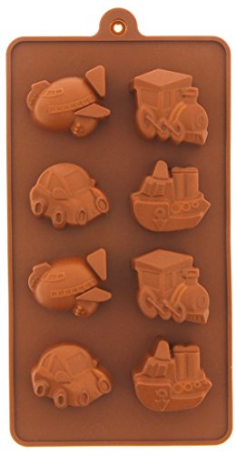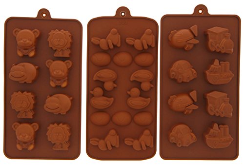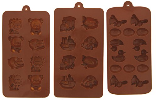 Silicone Pastry Candy Gummy Mold - Chocolate Ice Cubes Soap - 3 Piece Set - 8" x 4" Train, Plane, Car, Ship, Eggs, Rabbit, Duck, Lion, Hippo, Bear