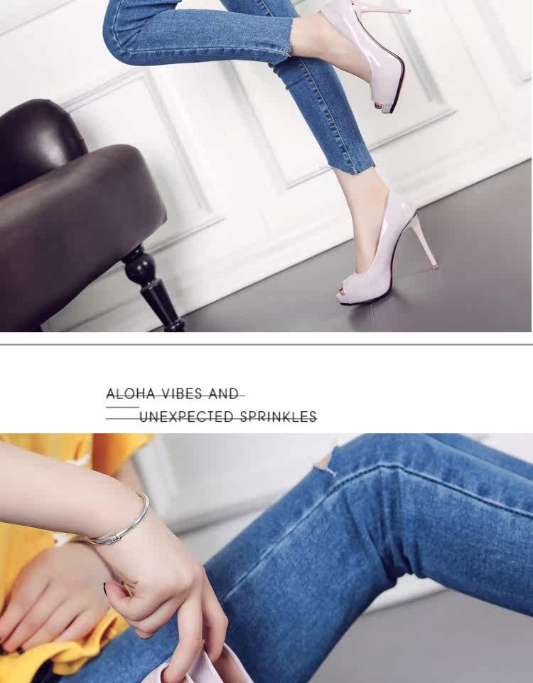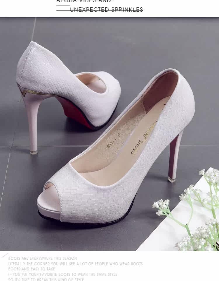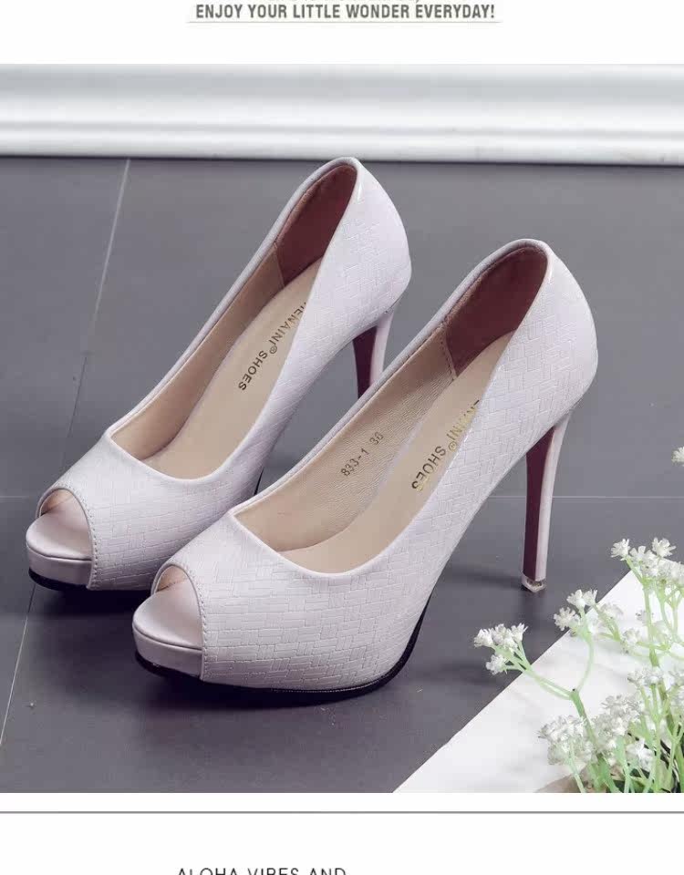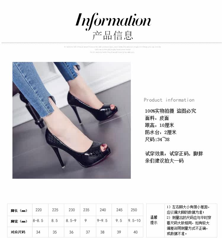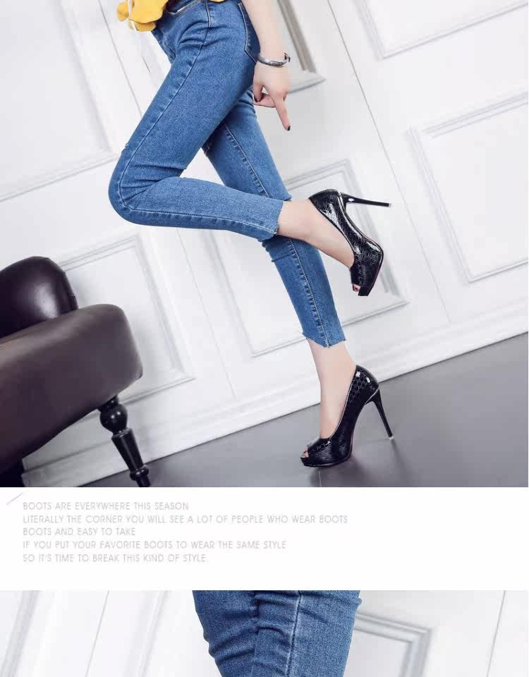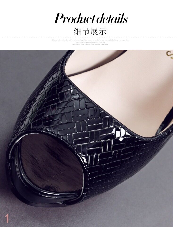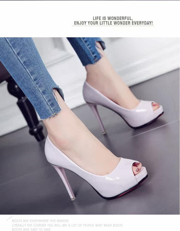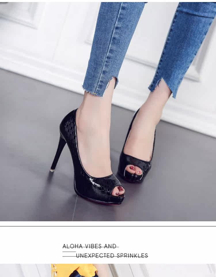 夏季鱼嘴鞋单鞋韩版亮皮细跟防水台高跟鞋浅口黑色女鞋子