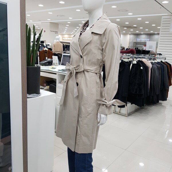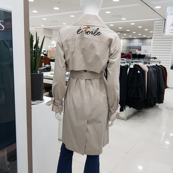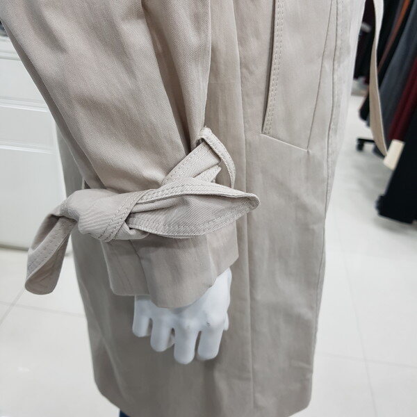 소매의 리본으로포인트를 주고 등판 날개에 자수 로고로 포인트를 넣어 스타일 리쉬하면서도 캐쥬얼한 면 트렌치 코트입니다