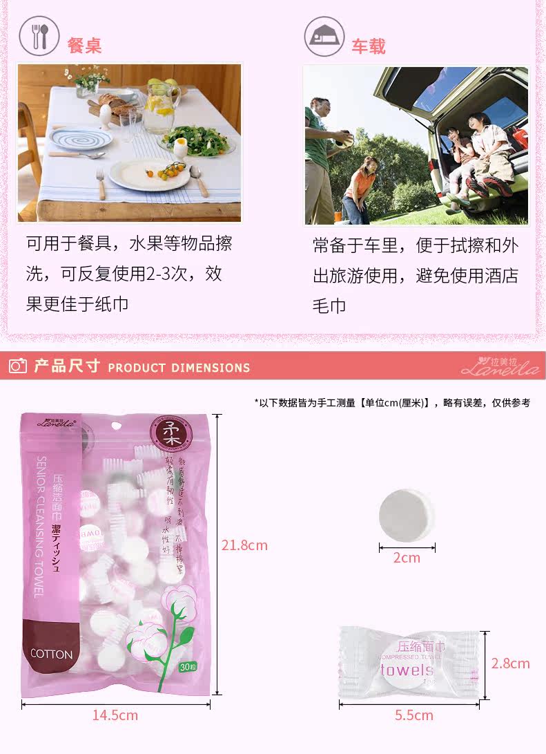 拉美拉30粒 压缩毛巾 一次性毛巾便携式迷你洁面巾洗脸巾旅行居家