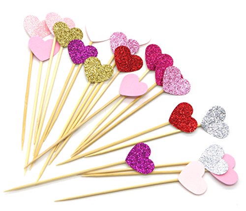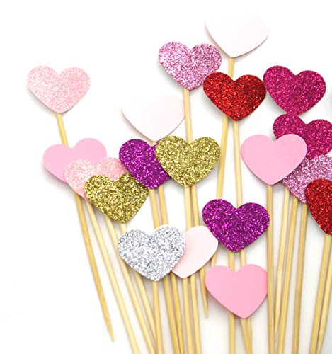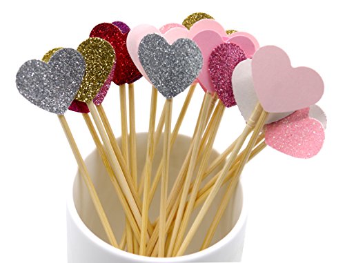 PuTwo 20 Counts 6 Colors Peach Heart Cake decoration Party Supplies Cupcake Toppers - 6 Colors