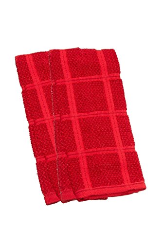 Farberware 100% Cotton Terry Super Absorbent Kitchen Towel, Large Check Design, Cherry- 2pk, Perfect for Drying Dishes & Hands, Machine Washable