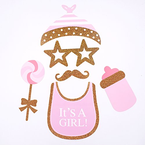 Aokayy 29pcs Baby Shower Photo Props Cute Baby Bottle Masks Pink Props Newborn Girl Gift Party Decorations for Party Favors