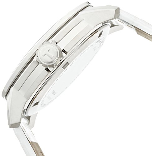 -. Feature : Stainless steel case with a white leather strap fixed stainless steel bezel / Black dial with luminous silver-tone hands and index hour markers / Swiss-quartz movement / Case diameter: 39mm / Water resistant to 660 feet