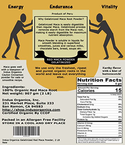 Indus Organics Red Maca Powder, 2 Lb Bag, Gelatanized, Pre-Washed, Premium Quality, Non-gmo, Freshly Packed