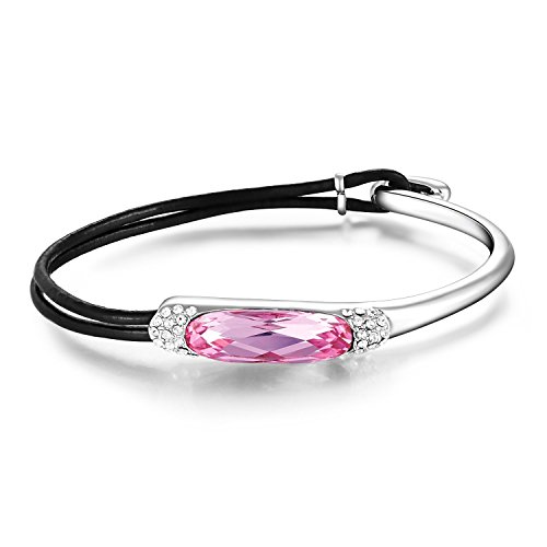 ◆Mondaynoon Elegant Lady Bracelet, the center piece is crafted with a shimmering australia imported Austrian crystal, it comes with a surrounding women's black rope/gold or silver plated alloy bangle with included crystals on bracelet itself.