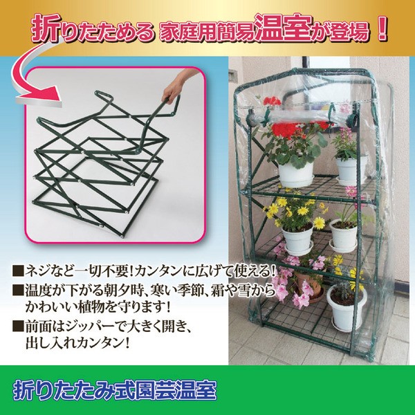 【商品名】折りたたみ式家庭用簡易温室(フラワースタンド) 前面ジッパー開き 透明カバー 〔ガーデニング 庭いじり 園芸〕