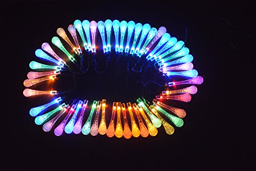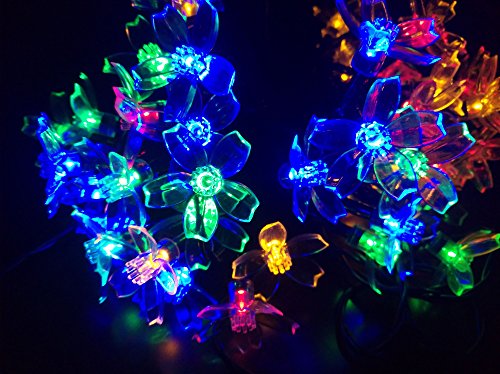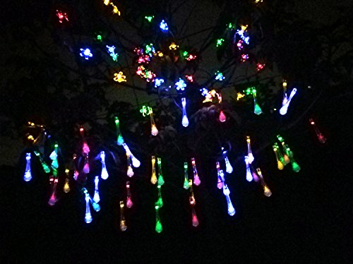 - ★2. led solar string lights: 50 colorful flower & rain drop LEDs on a 23 feet light rope , solar panel(2V/100mA) with 600mA NI-MH battery light garden outdoor
