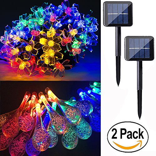 2 pack 50 led solar string lights 23 feet multi colored outdoor Christmas lights for party ,holiday, Festivals,birthday,outdoor, back yard, patio, lawn & garden decoration