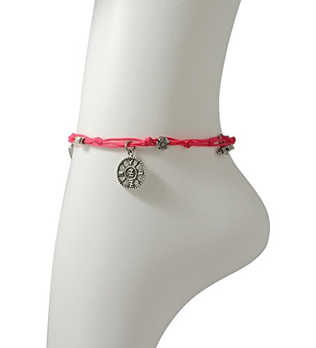 This Spiritual Protection bracelet for women includes the King Solomon Seal for spiritual protection from harmful energies - made of 925 Sterling Silver. The coin charm is 0.5" in diameter. The bracelet charm (925 Silver) is a King Solomon Seal amulet. King Solomon amulets, inspired by King Solomon, increase awareness and focus people on a specific goal, or dream. Choose the Seal that's right for you - 14 are available! This beautiful neon pink wax cotton ties charm anklet is size 9.5" and includes various lucky charms. This very sturdy, high quality handmade anklet is made with wax cotton cord, has a button clasp and is waterproof. MIZZE Made for Luck Jewelry provides a 100% full money back guarantee. If you are unhappy with your Charm Anklet, for any reason, please contact us!Feature