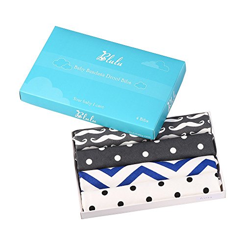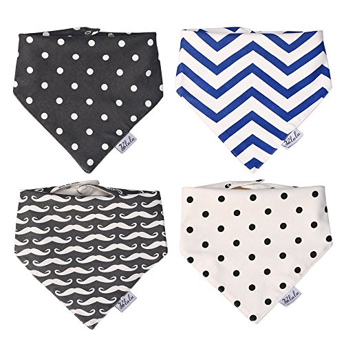 BLULU 4 PACK UNISEX BABY BANDANA DROOL BIBS WITH ADJUSTABLE SNAPS AND WATERPROOF TPU LINING