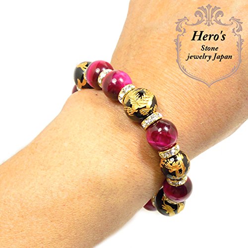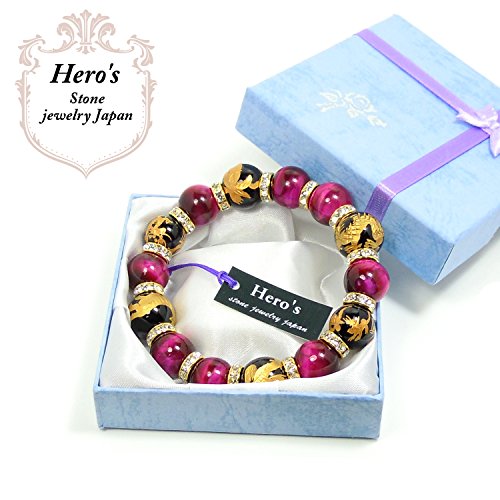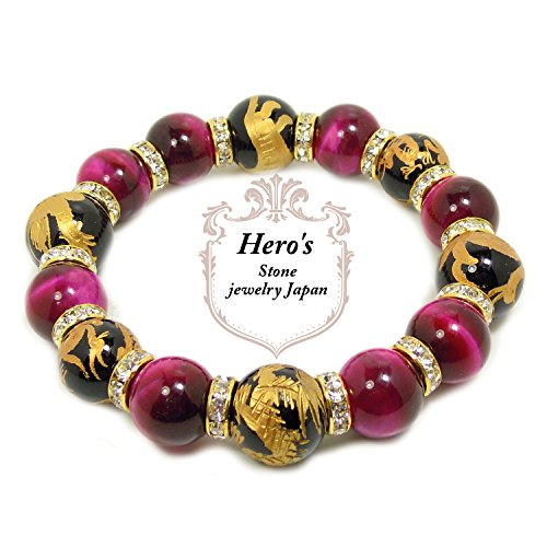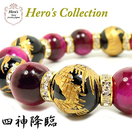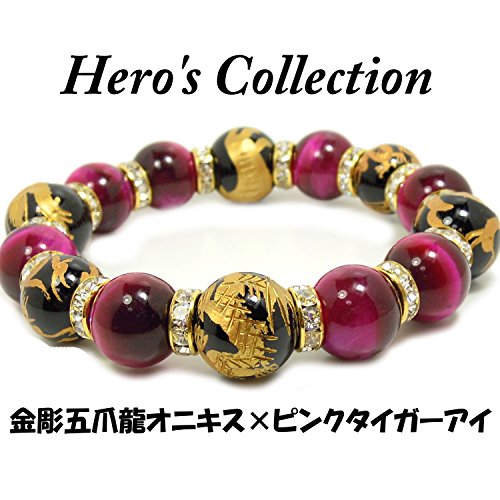 원본상품명: Heros(ヒ?ロ?ズ) 四神彫 オニキス 16mm ピンクタイガ?アイ 14mm パワ?スト?ン ブレスレット ?周17.5㎝ メンズ 天然石 四神?