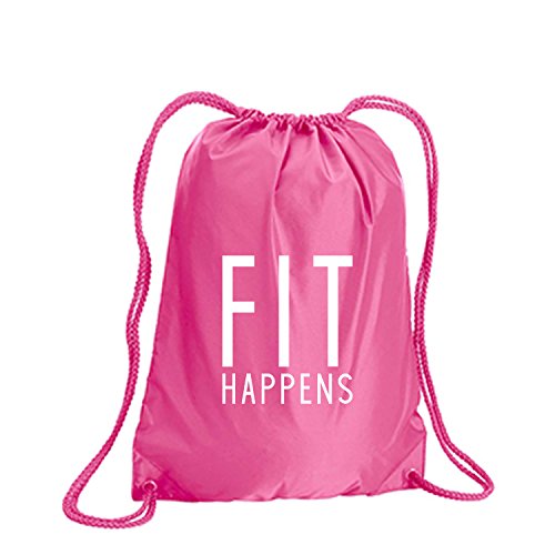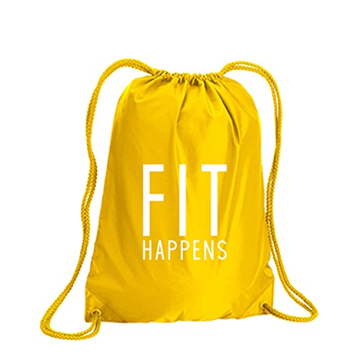 Product Description This durable and stylish nylon tote features "Fit Happens" on a cinch pack tote with white ink. Bag comes in small and large sizes and is made of a durable 210 Denier nylon and has color-matched draw cords. Printed in the USA on an imported bag. 0