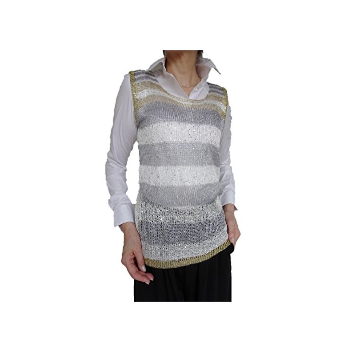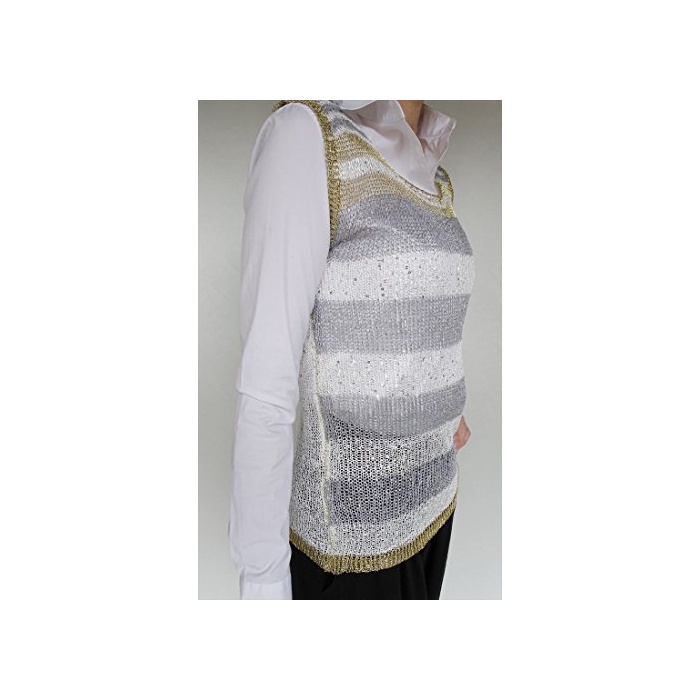D&L co.ltd (D 앤드 L) D&L co.ltd(D 앤드 L) 반짝반짝 보더 니트 베스트 골드 화이트 그레이