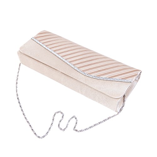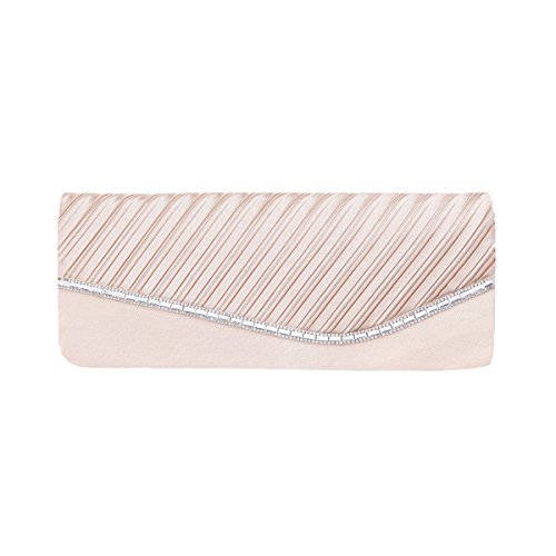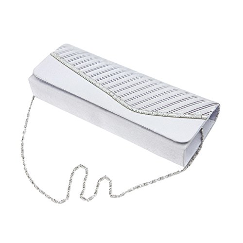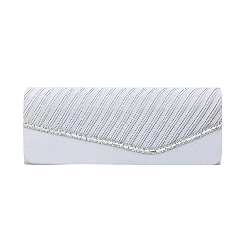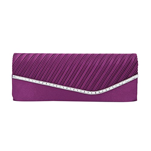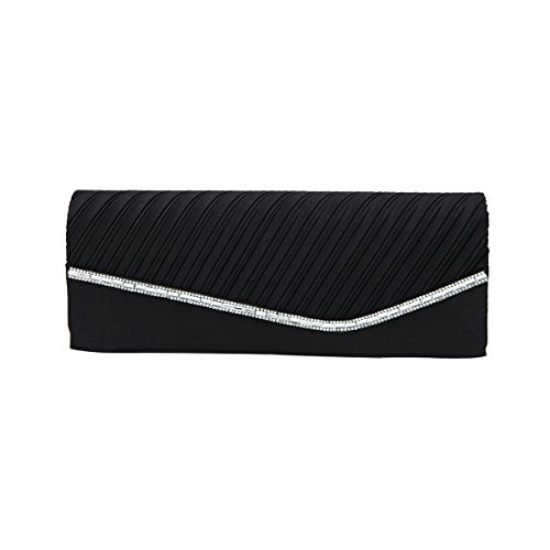 Product Description This premium quality evening clutch is both elegant and stylish. Half pleated satin fabric front with chic sparkling crystal rhinestones decor. Fully lined with magnetic-flap closure and inner wall pocket. Removable hideaway shoulder chain strap with 21" drop. Stunning, functional and versatile. The size is 10.25" (L) x 4" (H) x 2" (W). Elegant design and luxury feel. A must have accessory for the perfect night out. 0