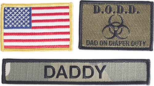 • All three badges (American Flag, DADDY, D.O.D.D)